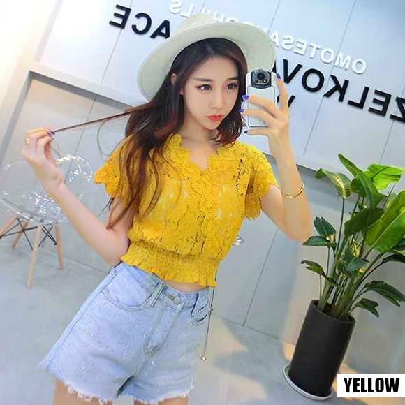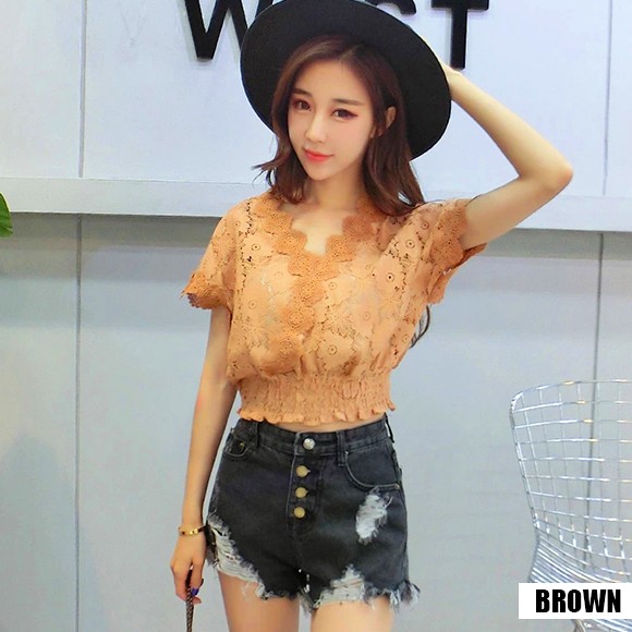 フラワー柄レースのカシュクールトップスです☆
