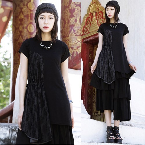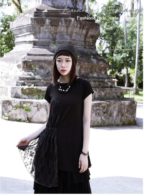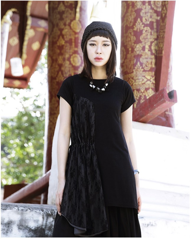 商品名:トップス レディース チュニック 切り替え 個性的 半袖 春 2017 モード系 個性的 40代 ファッション