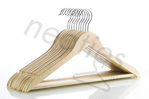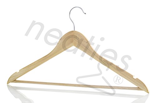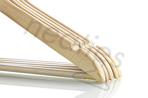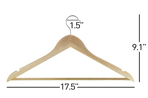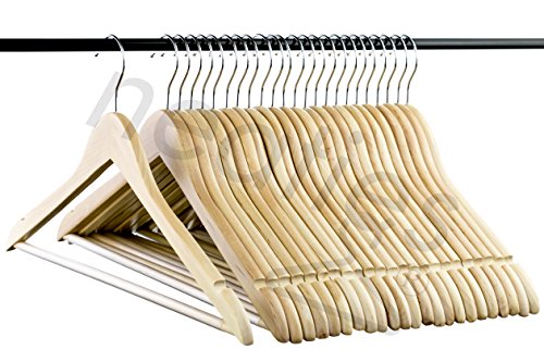 -. Title : Polished Natural Everyday Wood Hangers with Non-Slip Bar and Notches, Super Sturdy and Durable Wood, 24 pack