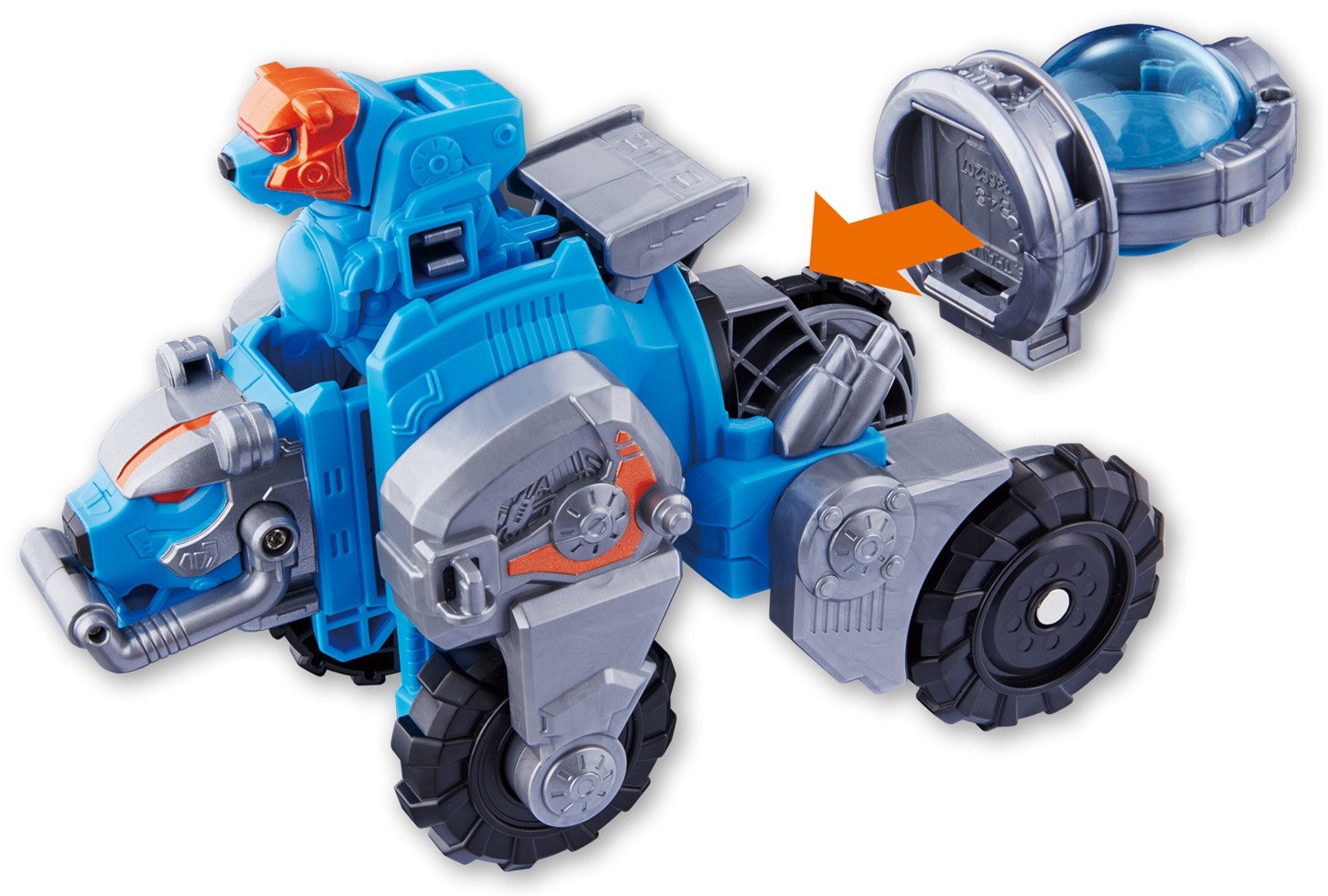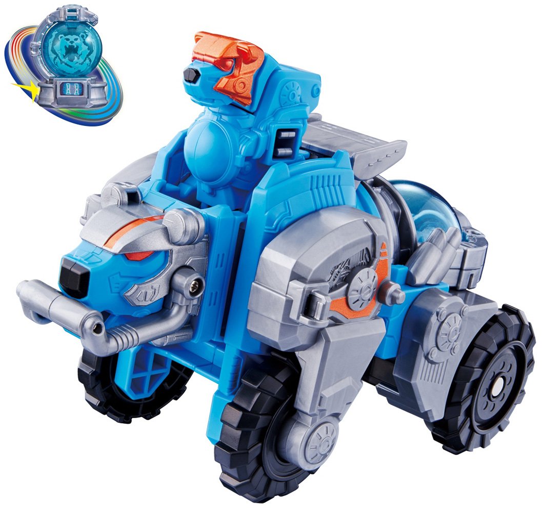 From the space squadron Queen Ranger, a combination of 11 DX Cogma Voyager & Oguma Voyager appears Cow Voyager on which Koguma Sky Blue Rides! One Coguma cuff that can be transformed into Cogma Sky Blue is included.