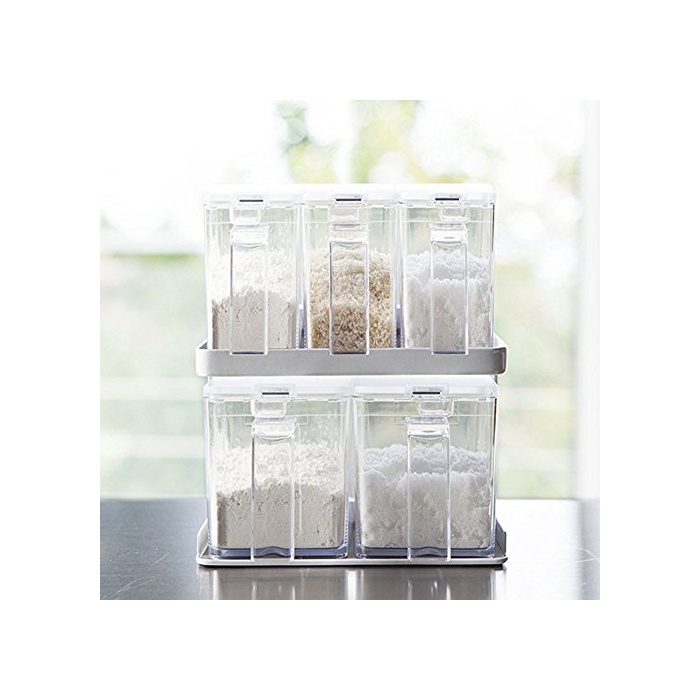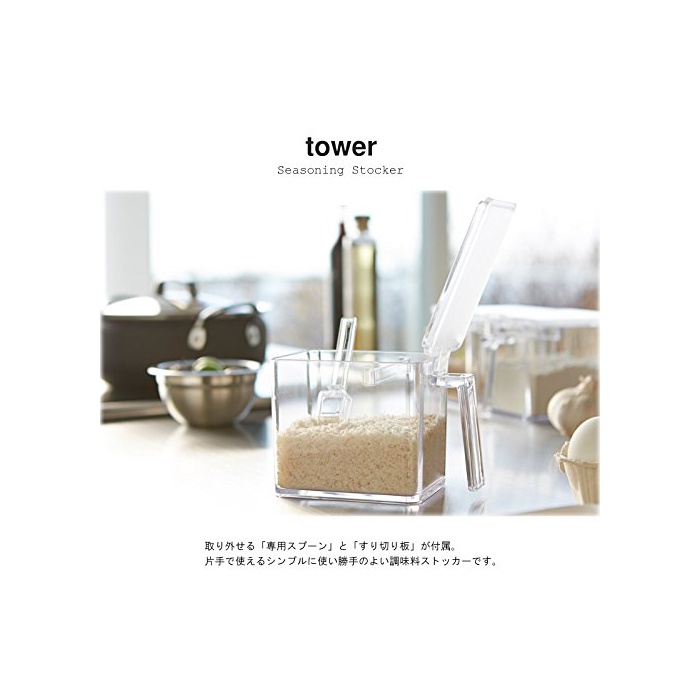 야마자키 실업(YAMAZAKI) 조미료 만들어 넣음(담는 그릇·상자 등) S사이즈 3개 L사이즈 2개 & lak 6점 세트 스토커 용기 케이스 수납 스푼 키친 타워 화이트 3341