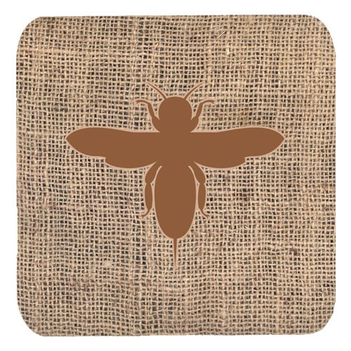 Caroline's Treasures BB1057-BL-BN-FC Bee Burlap and Brown Foam Coasters (Set of 4), 3.5" H x 3.5" W, Multicolor