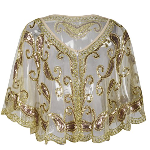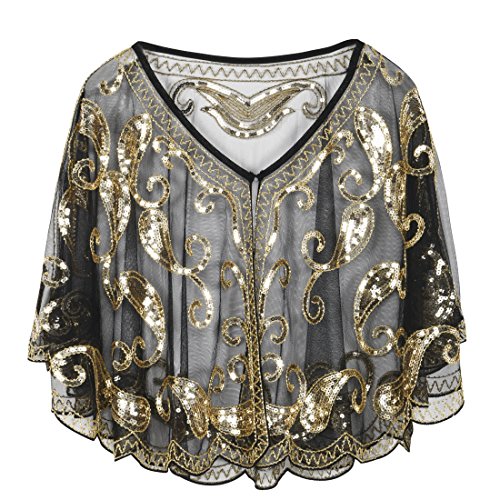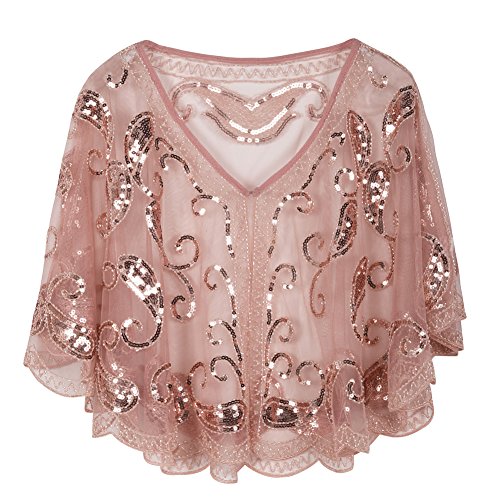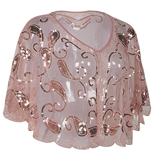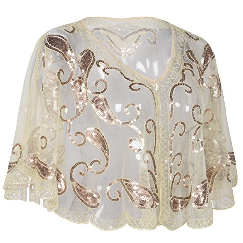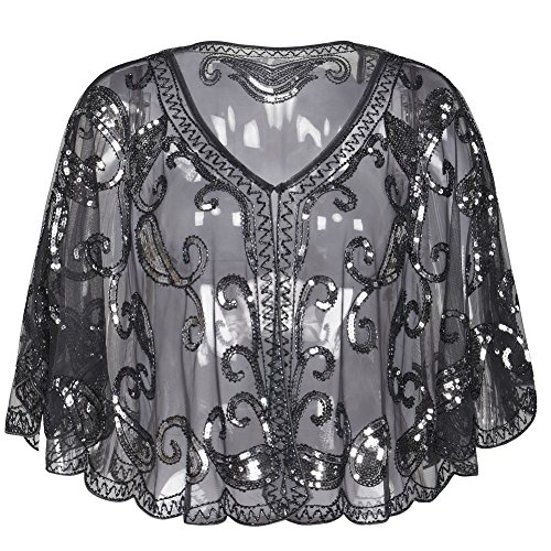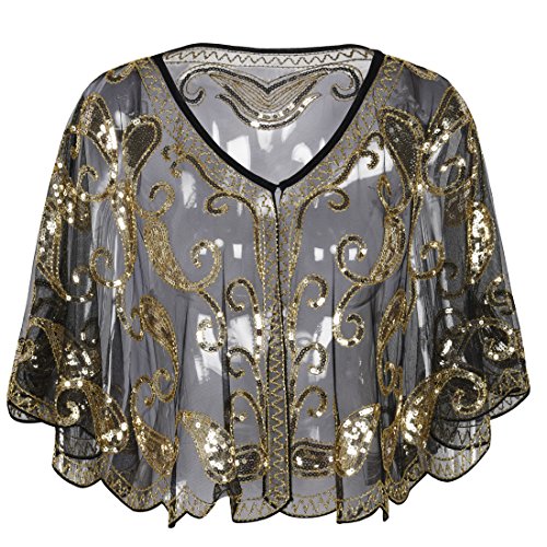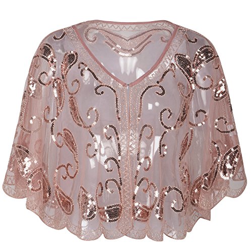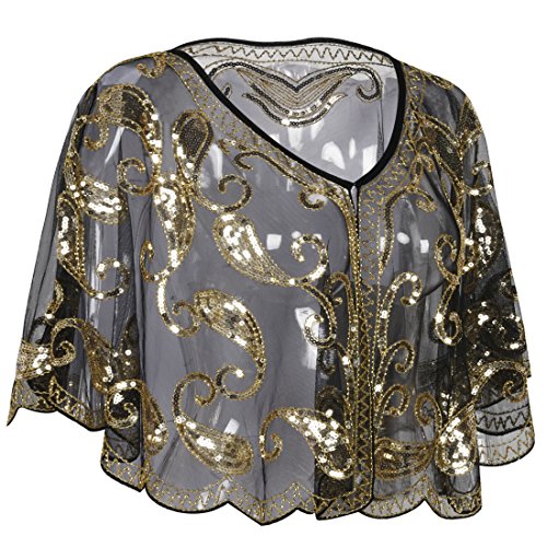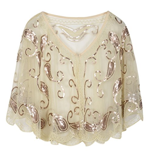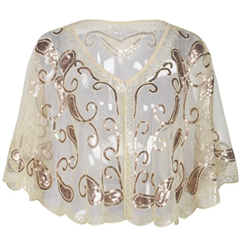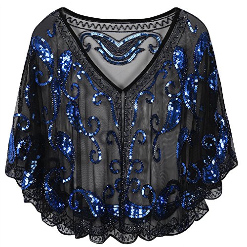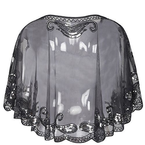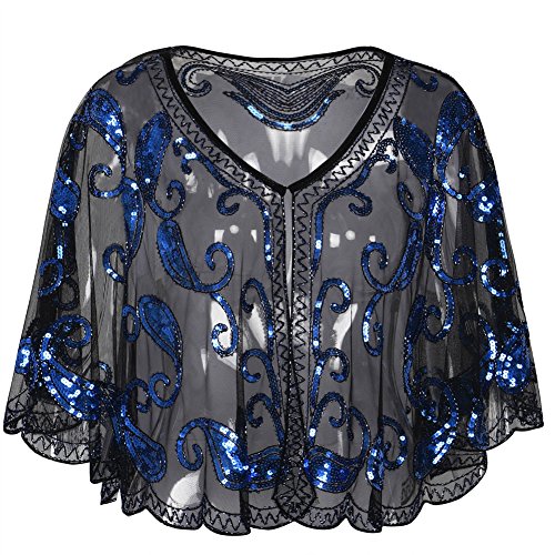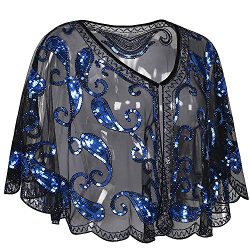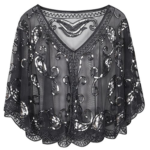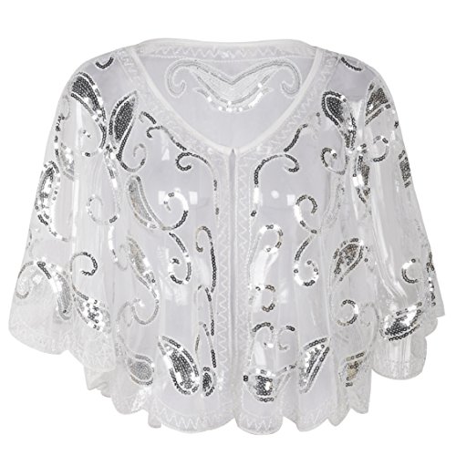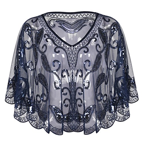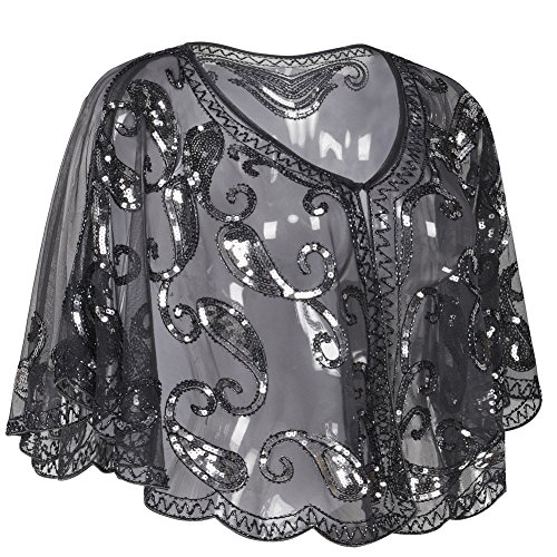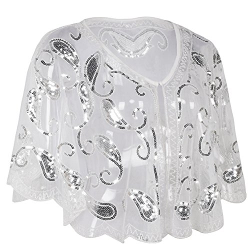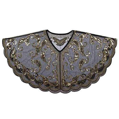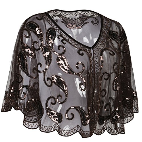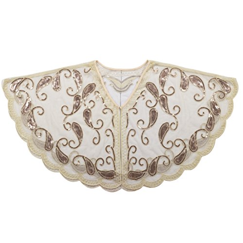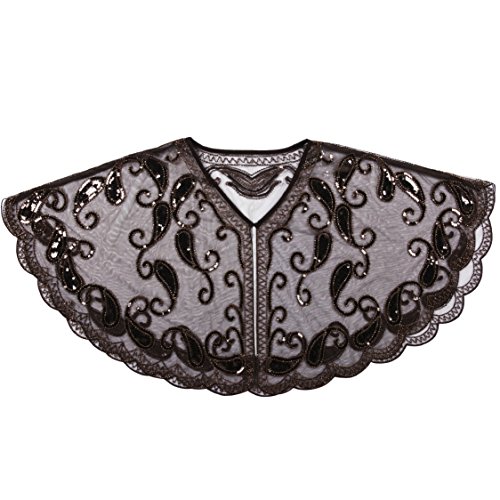 Brand: Kayamiya Women's 1920's clothing broke out of the prim and proper mold of Victorian ideals and into free spirited casual wear. In the roaring 20s, the clothing was glamorous and the women were elegant. Kayamiya focus on 20's dress includes fringe flapper dresses, flapper girl costumes,sequined flapper dress and beaded flapper dress. Kayamiya Women's 1920s Shawl Sequin Beaded Art Deco Wedding Cape Evening Wrap Perfect match 1920s dress, for 20's themed party/prom/wedding occasion. 0 |
