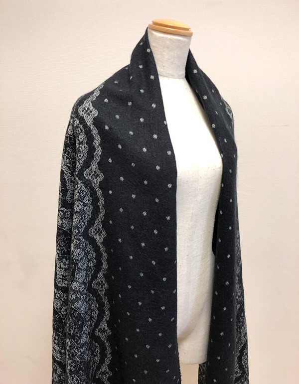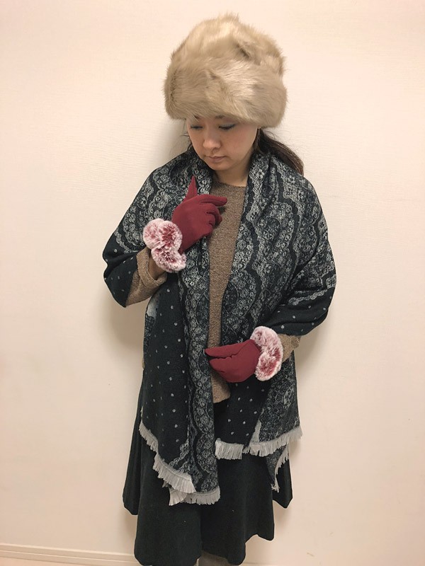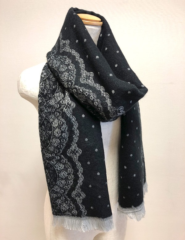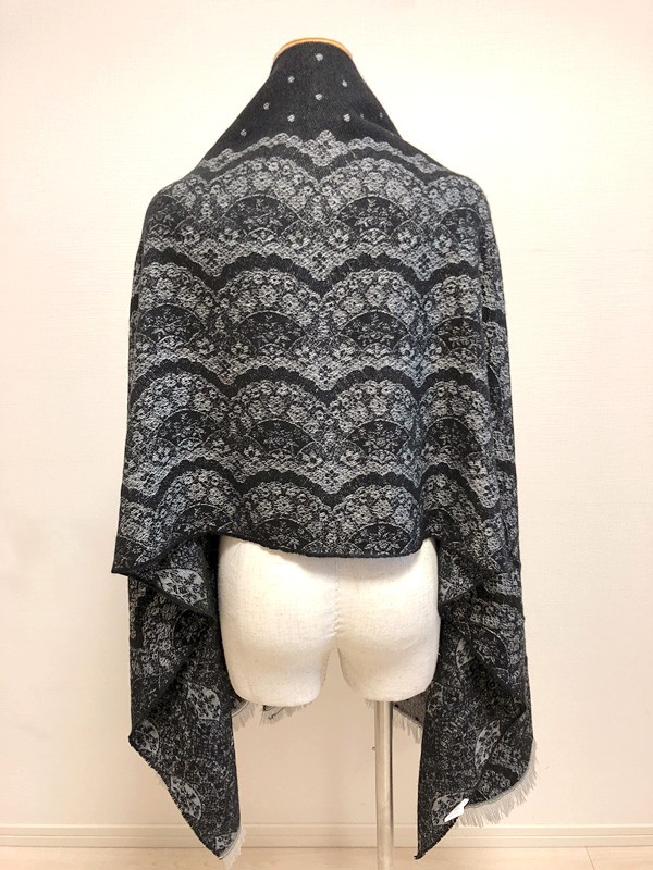 繊細なレース模様と水玉のモチーフがきれいめ可愛い大判ストールです コーデに差が付くレース柄がレディライクな印象💕 普段の着こなしにプラスするだけで、甘くなりすぎない大人のフェミニンコーデの完成です。 ふんわりとしたジャガード織りの起毛した生地はやわらかく肌ざわりなめらかで温かい。 裏返すと反転した織り柄なので、リバーシブルで色目を楽しめます☆ ショール風のアレンジも楽しめるたっぷり大きめサイズもうれしいポイント♪ カラーは、ブラック、ペールピンク、ネイビー、ミントグリーン、ダークグリーンの5色展開です。 |