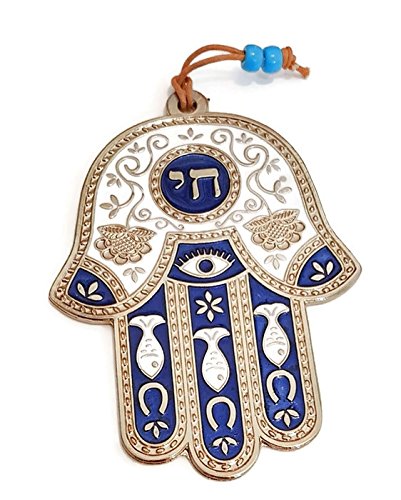 Metal and Enamel Hamsah from Israel with Chai (Dark Blue and White)