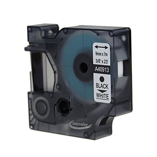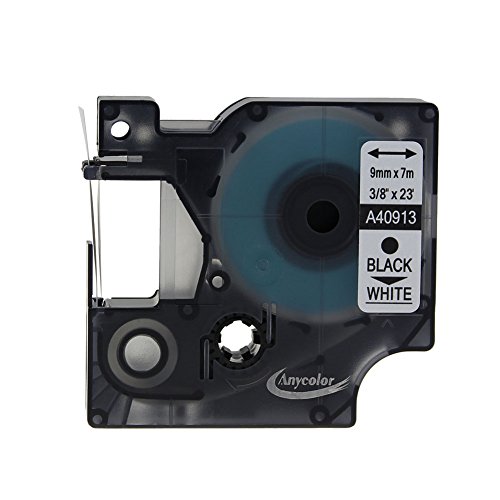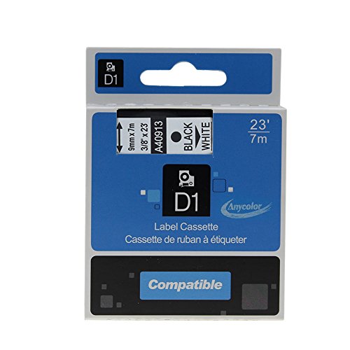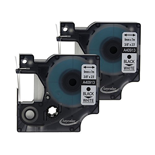 Anycolor 2 Pack Compatible DYMO D1 Label Tape 40913 S0720680 Black on White Label Cassette (3/8" x 23' 9mm x 7m)