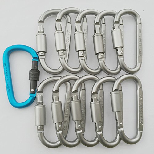 Cy3Lf Aluminum Alloy Carabiner Screw Lock Hooks, Practical Spring Snap Key Chain Clip Hook Outdoor Hiking Buckle (D-ring Shape) 10 pcs and 1 pcs blue Carabiner Keychain(GIFT)