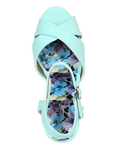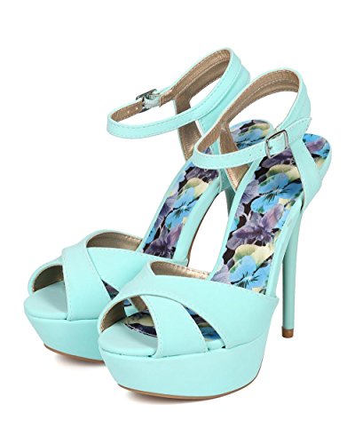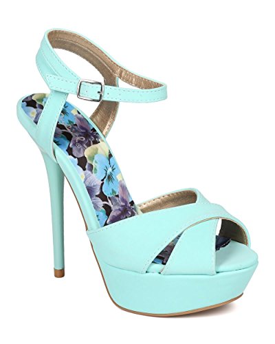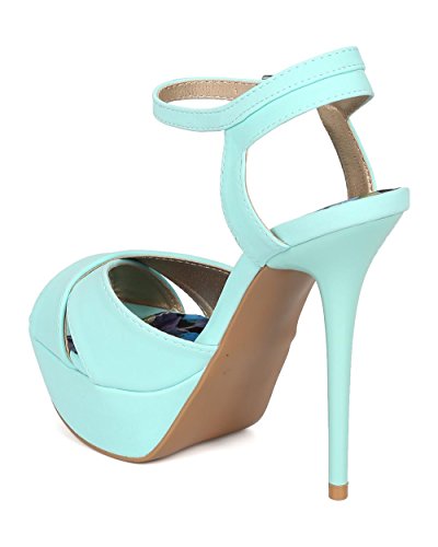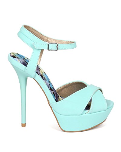 Qupid CF32 Women Nubuck Peep Toe Cross Band Platform Stiletto Ankle Strap Sandal - Mint