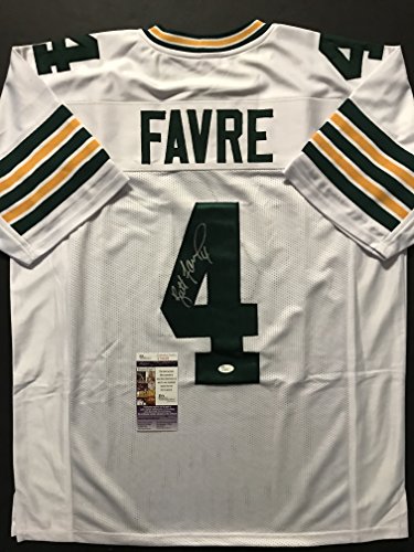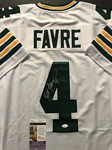 Autographed/Signed Brett Favre Green Bay Packers White Football Jersey JSA COA