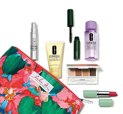 -. Feature : 1. Dramatically Different Moisturizing Lotion+, 1 fl. oz. (30ml) & Take The Day Off Makeup Remover, 1.7 oz. (50 ml) / 2. Clinique Smart Custom-Repair Serum, 0.34 oz. (10ml) & High Impact Mascara in Black, 0.14 oz. (3.5ml) / 3. Long Last Soft Matte Lipstick in Matte Crimson, 0.14 oz. (4g) / 4. All About Shadow Quad color palettes (shades: Starstruck from Morning Java Quad, Dark Brown From Teddy Bear, Amber From Morning Java Quad, and Jute Brown), 0.08 oz. (2g) / 5. Lulu DK Limited Edition Cosmetic Bag Size: 10.5" x 5.5" x 3"