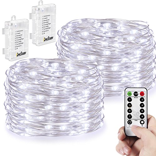 2 Pack String Lights, Battery Operated 66 LED 16.4FT Silver Wire 8 Modes Twinkling Fairy lights with Remote Waterproof for Indoor Bedroom Wedding Festival Decor Patio Christmas Lights (Cool White)