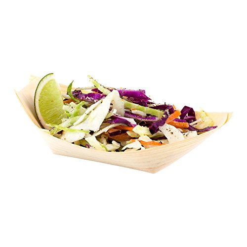 Medium Disposable Wood Serving Boats – Natural Pinewood Take Out Trays: Perfect for Restaurants, Caterers and Food Trucks – 6.0" x 3.25" – Biodegradable and Compostable – 200-CT – Restaurantware