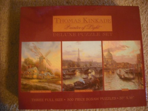 -. Feature : Set of 3 puzzles by Thomas Kinkade: 1. The Wind of the Spirit, 2. Paris, Eiffel Tower, 3. Venice / Each of the 3 puzzles has 500 pieces