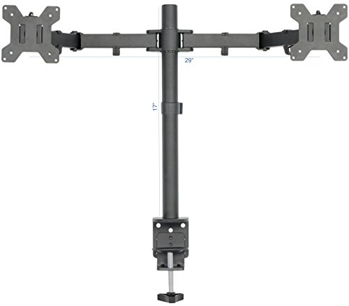 COMPATIBILITY – Dual monitor mount fitting two screens 13” to 27” in size and 22 lbs in weight each with 75x75mm or 100x100mm backside mounting holes