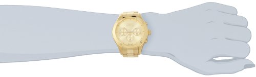 Gold ion-plated stainless steel watch with tonal dial featuring three subdials and luminous hands