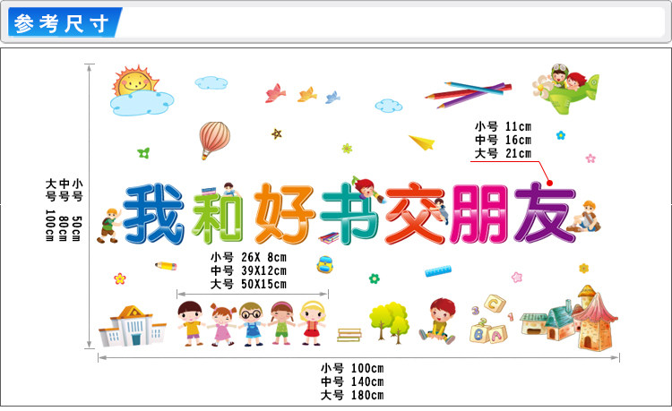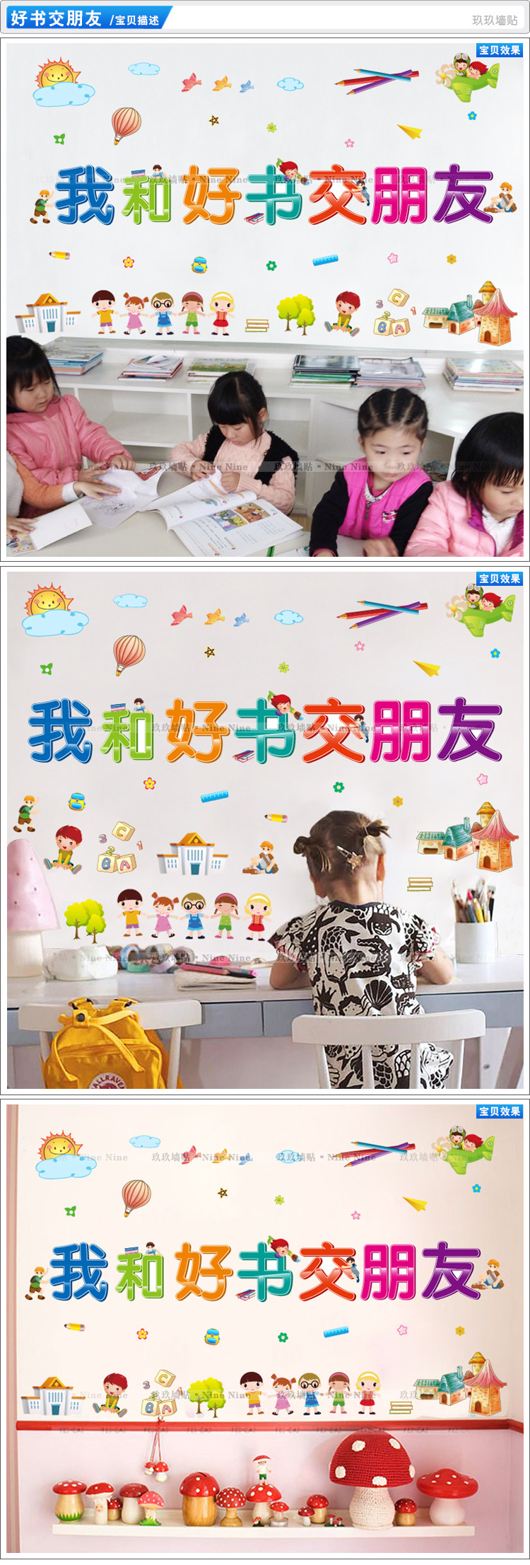 读书学习墙贴书店图书馆阅览室幼儿园小学卡通图书角学习角贴纸画