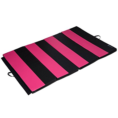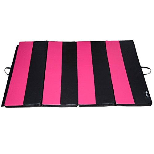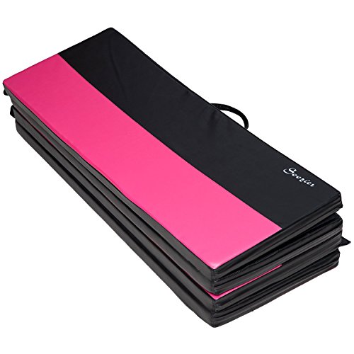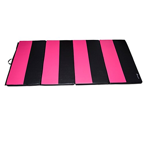 Our Soozier brand 4' x 6' x 2" folding mat is a great addition to your home gym and provides you with a comfortable spot to do your floor exercises. This exercise mat is thick and is quite durable. It has a convenient design so that you can fold it and store it when not in use. The workout mat also has sewn in handles making it portable and convenient, so you will no longer have trouble transporting the mat to and from gymnastics or sporting. Our exercise mat is covered with PU leather which is non-absorbent and will enable you to clean it easily. With its ease of use, durability and its non-absorbent technology, this exercise mat is ideal for a great workout. Features: - Excellent for tumbling, exercise programs, Pilates, stretching, yoga, martial arts, gymnastics, day care activities and many other uses - Constructed of 4 panels: each 4' x 1.5' x 2" - Mat material: 2" thick firm white high density EPE foam - PU Leather: The non-absorbent shell which is fire-retardant, puncture and mildew resistant provides sanitary protection for your workout needs and is sealed by zipper - Folding design for versatility - Folds up easily for carrying and storage - Made with thick long-lasting foam - Sewn handle for easy transportation - Velcro strap on each end of the mat allows for connection to additional mats for tumbling runs. - Easy to clean durable PU leather cover Specifications: - Dimensions: 4' wide x 6' long x 2" thick pad - Panel Number: 4 Panels - Panel dimension: 4' x 1.5' x 2 " - Velcro dimension: 4' x 2".Feature