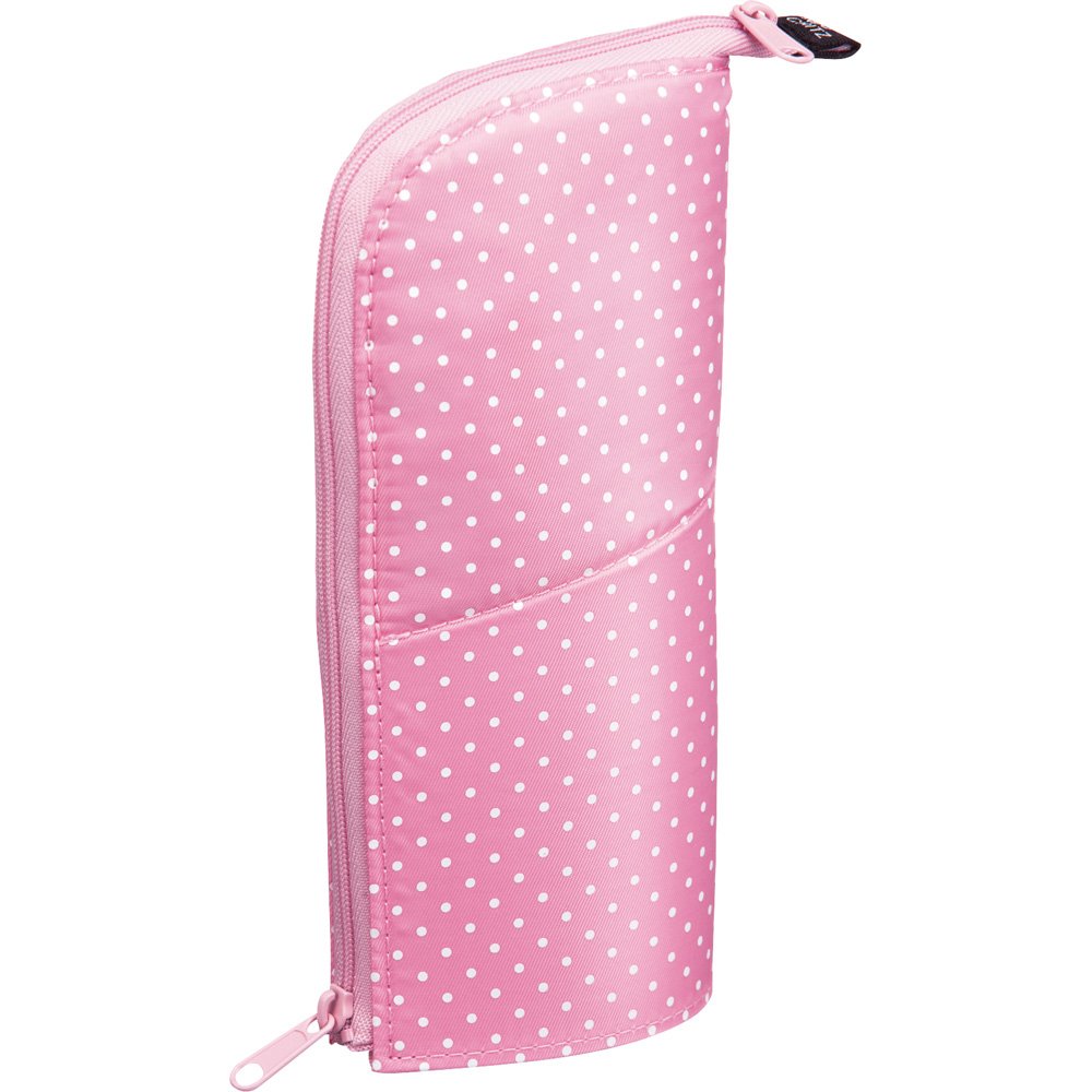 ペンスタンドになるペンケース「ネオクリッツ」が、なめらか素材になって登場 【サイズ】 85×50×195mm 【カラー】 (外側)ドットピンク×(内側)ピンク 【収容本数】 約15本 ※ペンの種類によって前後します 【材質】 表材・内装:ポリエステル、芯材:PP