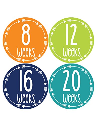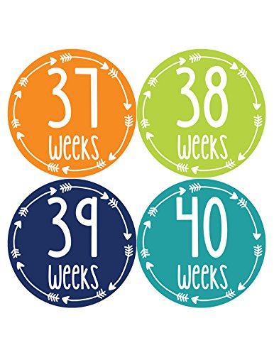 Months in Motion 956 Pregnancy Baby Bump Belly Stickers Maternity Week Sticker Arrows (Orange/Green/Navy)