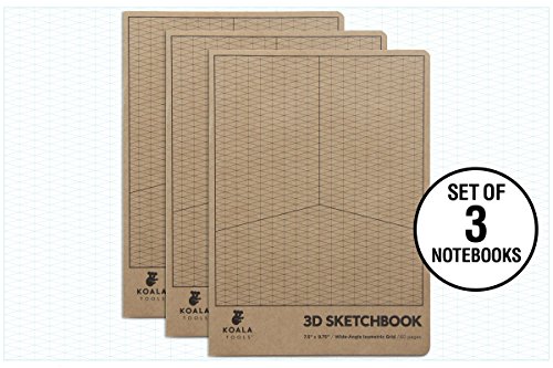 Koala Tools | Isometric Graph Paper Notebook (3 pack) | 7.5" x 9.75", 60 pp. - Kraft Cover Isometric Grid Drawing Pads - Suitable for Industrial, Architectural, Interior Design