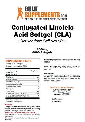 Product DescriptionBulkSupplements Conjugated Linoleic Acid (CLA) Softgels (1000mg)0