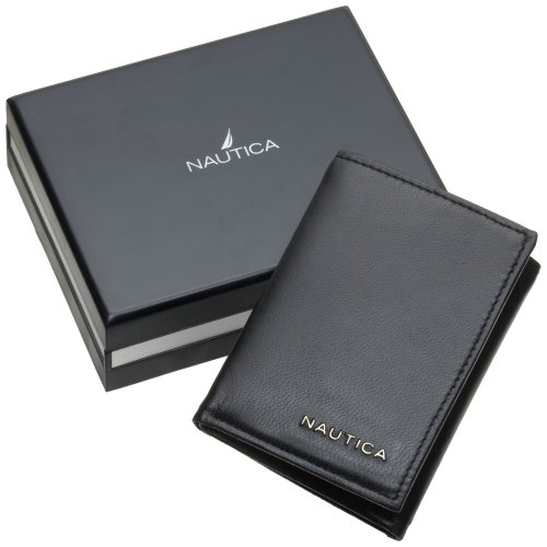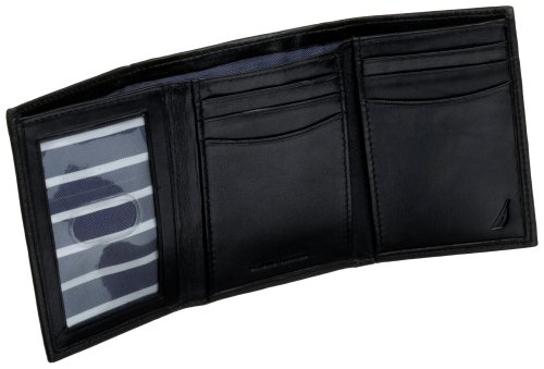 -. Binding : Apparel -. Brand : Nautica -. Department : mens -. Feature : Trifold leather wallet with hardware logo at front and debossed logo inside / Imported / One bill compartment, six card slots, leather-framed ID window, and two extra storage compartments -. Label : Nautica -. Manufacturer : Nautica -. Model : 91-6292-01 -. ProductGroup : Apparel -. ProductTypeName : ACCESSORY -. Publisher : Nautica -. Studio : Nautica -. Title : Nautica Men's Trifold Wallet