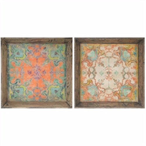 Benzara Captivating Square Wooden Trays, Multi-Color, Set of 2