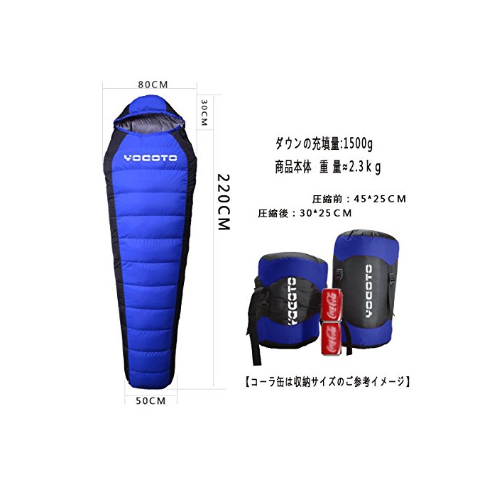 원본상품명: 【YOGOTO】袋 シュラフ ダウン 連結可 耐寒度-25℃ スリピングバック シェラフ マミ型 冬用 羽毛 車泊 トレッキング 防災 コンパクト