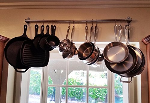 Organize your kitchen space like a professional chef by hanging your pots, pans, kitchen utensils and towels by using stainless steel rail and hook set.