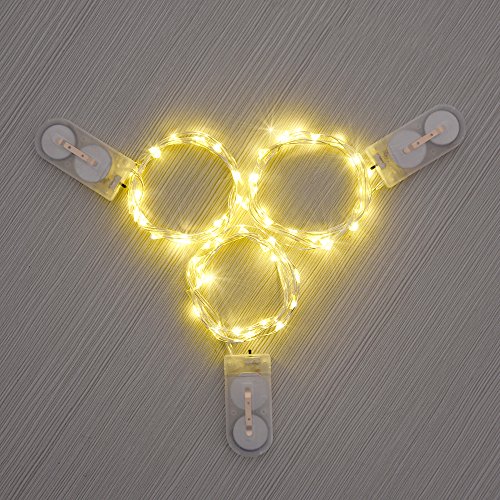 -. Feature : 10 Pack 20 micro LEDs lights on 3.3 feet (1 meters) ultra thin string wire, emiting warm white light / Each Light is powered by 2 CR2032 battery (included); Switch on the lights and enjoy the amazing warm atmosphere / Portable and small size enable you to carry easily and makes it easy to hide into your desired decors / Micro string Lights are suitable for party, wedding, bar, street, indoor, outdoor, Christmas, holidays, etc. / Easy to install, made from a fine bendable sliver wire, can be bent to most shapes as beautiful decorations
