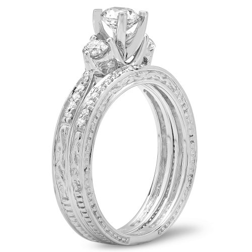 -. Binding : Jewelry -. Brand : DazzlingRock Collection -. Department : womens -. Feature : Other ring sizes may be shipped sooner. Most rings can be resized / Items is smaller than what appears in photo. Photo enlarged to show detail. / Satisfaction Guaranteed. Return or exchange any order within 30 days. / All our diamonds are conflict free. / Gemstone : Diamond -. Label : DazzlingRock -. Manufacturer : DazzlingRock -. Model : K2157-P -. MPN : K2157-P -. PartNumber : K2157-P -. ProductGroup : Jewelry -. ProductTypeName : FASHIONRING -. Publisher : DazzlingRock -. Studio : DazzlingRock -. Title : 1.00 Carat (ctw) 14K Gold Round Diamond Ladies Vintage 3 Stone Bridal Engagement Ring Band Set 1 CT