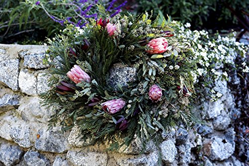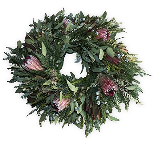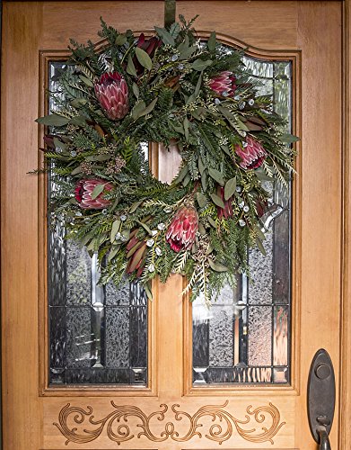 Furrow & Vine – Fresh Protea and Mixed Greenery Wreath (24”) – Handcrafted in the USA – Decorates any Door or Wall Inside or Outside