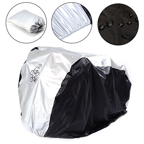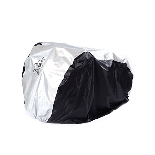 -. Feature : Made up of polymer fabric which is extremely durable and weather proof / Extremely easy to wash and protects your bike from dangerous UV rays / Protect your bike from rain, dust, sunshine and scratches,suit for 2 bikes / Dimension: 200x105x110cm /78.7"*41.3"*43.3"(L.W.H),Comes with storage bag / Covers the bike or the bicycle fully all the way to the ground, a complete protection system for your beloved bike