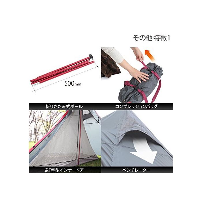 DOPPELGANGER(DOPPEL GANGER) 아웃도어 라이더의 원 폴 텐트 투어링(touring) 사양 50㎝ 수납 테이블이 쓰이는 전실 T1-442