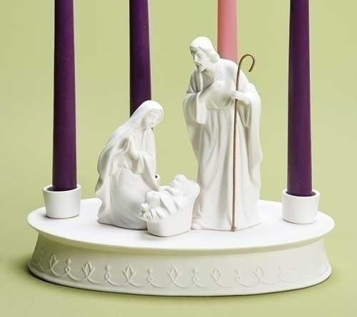 9.75" Porcelian Holy Family Advent Wreath Without Batteries Candles by Roman