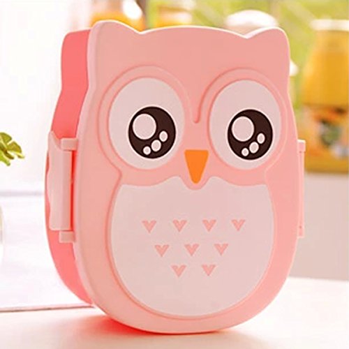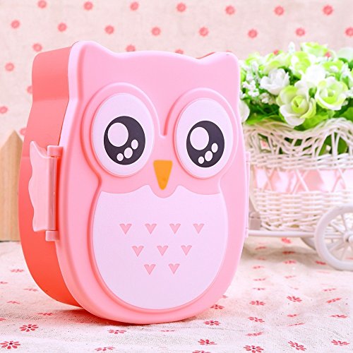 Divided Sectioned Kids Lunch Containers Plastic Box Storage with Spoon and Fork for Take Out Meals Back to School Best for Office Camping Picnic Bodybuilding Cute Owl Design