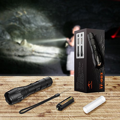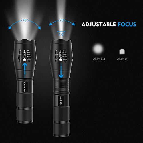 KANGORA UF003 LED Flashlight Tactical with Box, 5 Light Modes, and Zoom Focus for Camping, Hiking, Cycling, and Emergency Search Missions