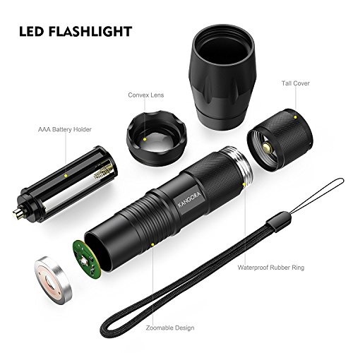 - ✔FLASHLIGHT KIT COMES IN An UPSCALE GIFT BOX - A super bright flashlights with portable lanyard, a 18650 Battery sleeve, a AAA battery holder. This flashlight kit may be given as a present for Christmas Day.