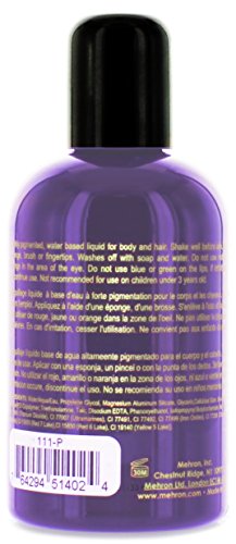 Each 4.5 ounce bottle of Mehron Purple Liquid Face Paint will work for 90-300 applications.