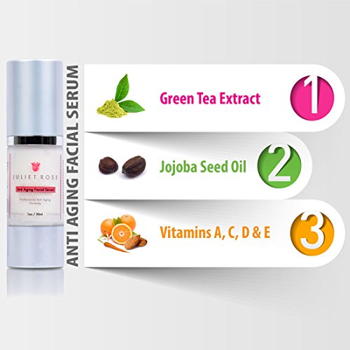 -. Binding : Misc. -. Brand : Juliet Rose -. EAN : 0755702029698 -. Feature : ✭ 4.7 out of 5 STARS - Our customers agree we have something special here. Check out our reviews below! / ✭ GIVE YOUR SKIN THAT YOUTHFUL GLOW - Our serum helps to restore the characteristics of the young dermis and reinforces its support function to fight any loss of skin firmness / ✭ TIRED OF THOSE FINE LINES AND WRINKLES? - A combination of active peptides will work to tighten, lift and firm your skin in as little as 28 days or less. / ✭ MADE IN THE USA - Juliet Rose offers the best Anti Aging Facial Serum and it is made right here in the U.S.A. at an FDA approved facility that carries GMP Certification. What does this mean for you? It means that our product is safe for your skin. / ✭ 100% MONEY BACK GUARANTEE - With all of the options available on the market today, we appreciate you choosing Juliet Rose. To prove it, we are removing the risk from your purchase. Buy any product from us today and if you are unsatisfied with your results, we will refund your money. No questions asked. -. Label : Juliet Rose -. Manufacturer : Juliet Rose -. Model : AAS-1 -. MPN : AAS-1 -. PackageQuantity : 1 -. PartNumber : AAS-1 -. ProductGroup : Beauty -. ProductTypeName : BEAUTY -. Publisher : Juliet Rose -. Studio : Juliet Rose -. Title : Juliet Rose - The BEST Anti-Aging Facial Serum with Vitamin C. Professional Formula designed for your face with Jojoba Seed Oil, Green Tea Extract, Vitamin A, Vitamin D and Vitamin E -- 4.8 Out Of 5 Stars -- 100% Money Back Guarantee -. UPC : 755702029698