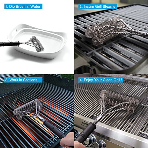 ✅ HANDY AND EASY TO USE - The 18" handle keep your hands away from the heat grill. Stiff rigid construction and light-weight will make your cleaning effortless and efficient. Enjoy your fantastic party time!
