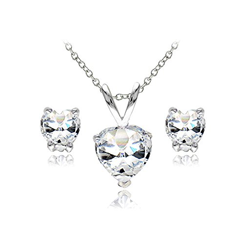 -. Title : Sterling Silver Genuine, Created, or Simulated Gemstone Heart Solitaire Necklace and Stud Earrings Set