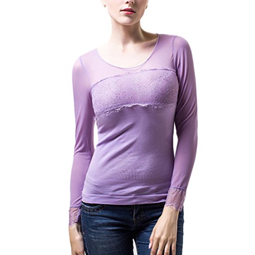 -. Title : Zhuhaitf Thin Thermal Underwear Top with Stitching Lace Design for Ladies Winter ナイトウェア