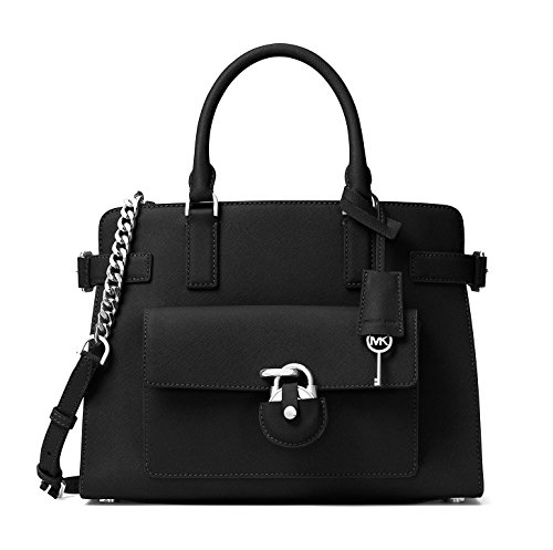 -. Brand : MICHAEL Michael Kors -. Color : Black -. Department : womens -. EAN : 0190049511558 -. Feature : Saffiano Leather / Interior: 1 Zipper Pocket, 4 Open Pockets, 1 Center Zip / Exterior: 1 Front Pocket with Magnetic Snap / Handle 4.5"; Adjustable Strap: 18"-20" / 12.5"W X 9.25"H X 5"D -. ProductGroup : Shoes -. ProductTypeName : HANDBAG -. Size : Medium -. Title : MICHAEL KORS Emma Saffiano Leather Satchel (Black) -. UPC : 190049511558