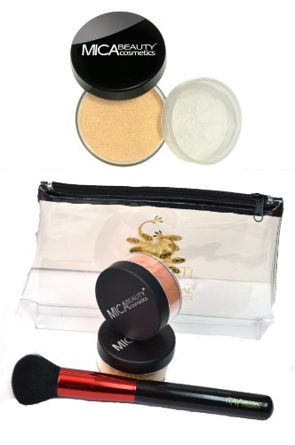 -. Feature : 2 (9 Gram) Full Size MicaBeauty Mineral Foundation in MF7 Lady Godiva / 1 Powder Brush / 1 Airplane Travel Cosmetics Bag
