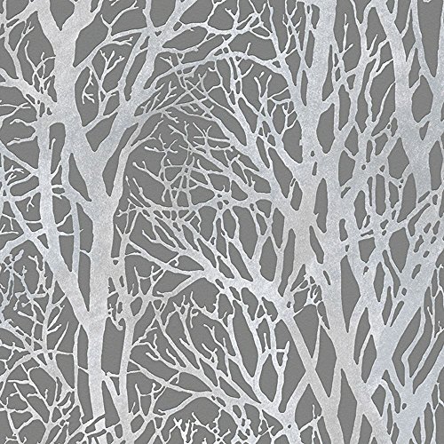 -. Title : Tree Branches Wallpaper Dark Grey and Silver - AS Creation 30094-3