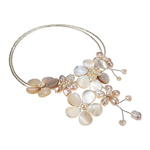 -. Feature : Material: Memory wire wrap, Glass beads | Weight: 33.2 grams / Design Measurements: 75 mm (2.95 in) wide | Necklace Length: 14-22 in (adjustable) / Stone: Cultured freshwater pink pearls (dyed), Pink mother of pearl (dyed) / Clasp Type: Open-Ended, Adjustable | Style: Fashion, Dressy / Includes an official 'AERAVIDA Fair Trade Sourcing' Card with certified Seal of Authenticity.