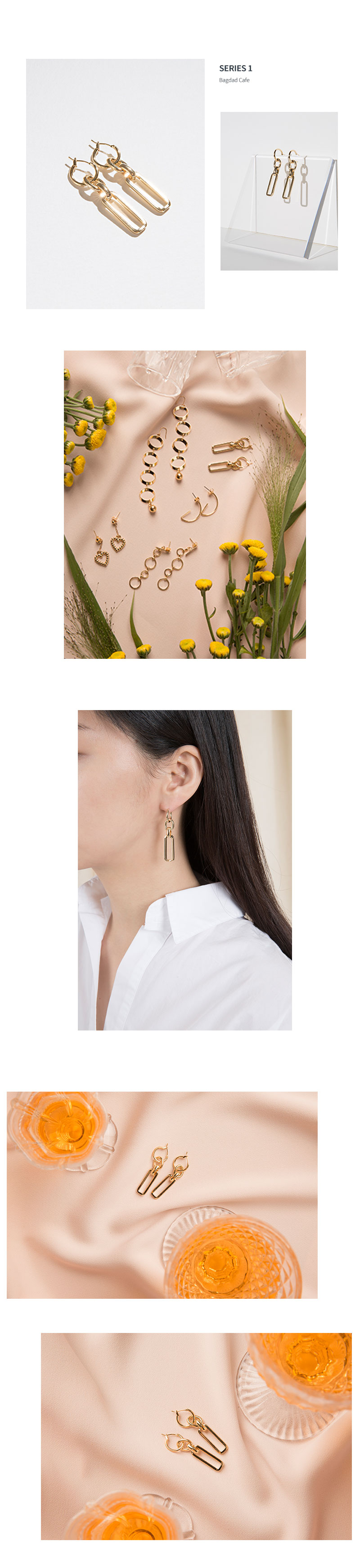 겉은 화려하지만 혼자이고 싶은 데비처럼 여러가지 모양의 라인으로 구성된 심플한 골드 귀걸이입니다.