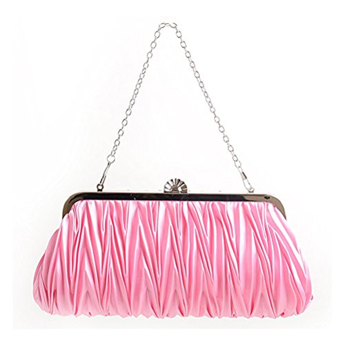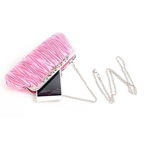 Features - Color: Pink. - Material: Satin. - Size: About 27 * 12 cm/ 10.6 * 4.7 inch(L*W). - The silk are the main material of the clutch with a fabric lining. - Two detachable chains (6 and 23 inches) to convert from handbag to cross-body. - Exquisite and smooth texture, soft and comfortable. The fine metal clamp design add a beautiful luster, delicated hardware chain very dazzling. - Perfect for weekend, wedding, evening party.