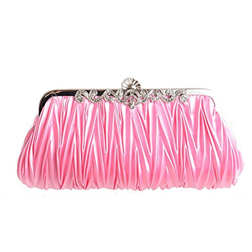Package Including 1 * Womens Satin Evening Clutch Wedding Party Purse Cocktail Handbags (Pink) 0